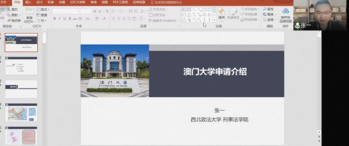 2022年5月13日晚,在tyc33455cc太阳成集团副教授、法学博士张斌的主持下,开展了“疫情期间的留学规划”主题讲座。